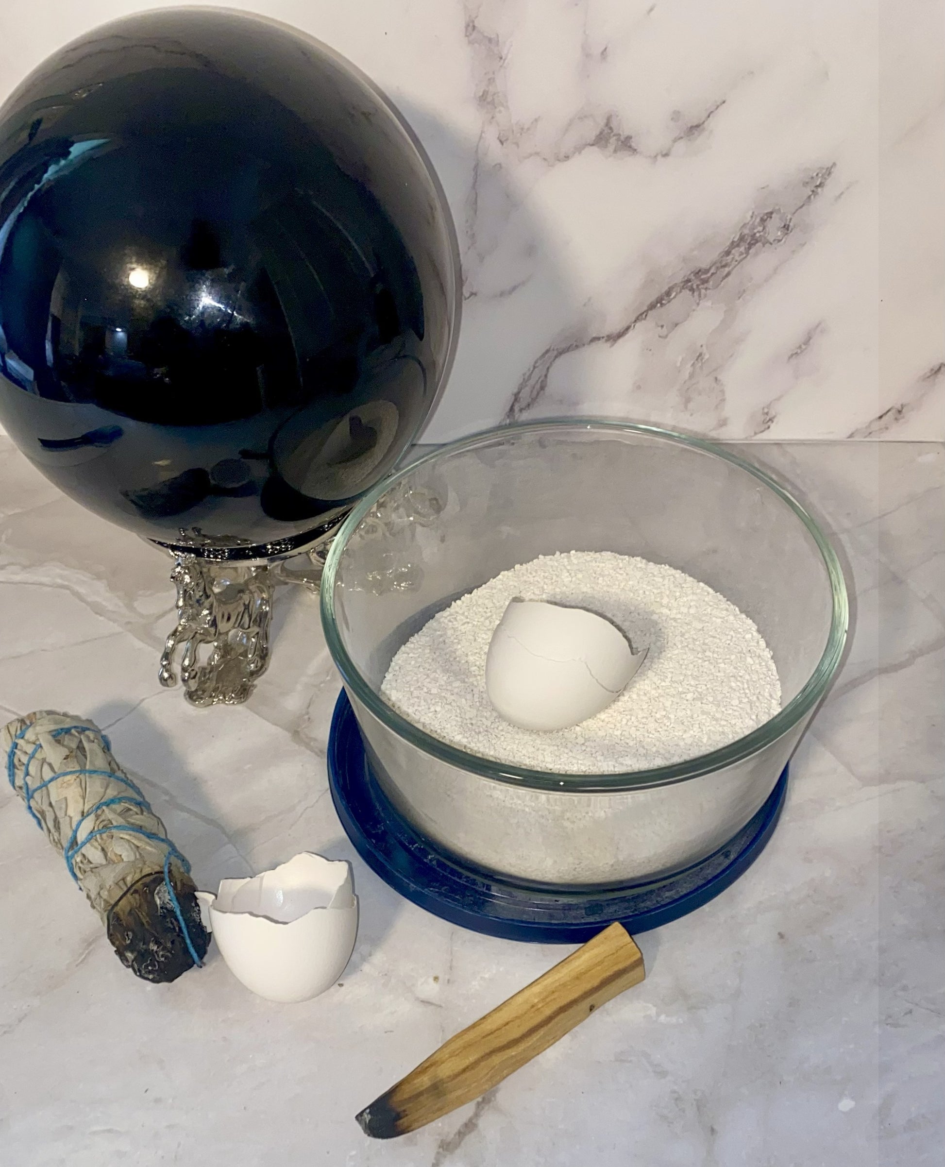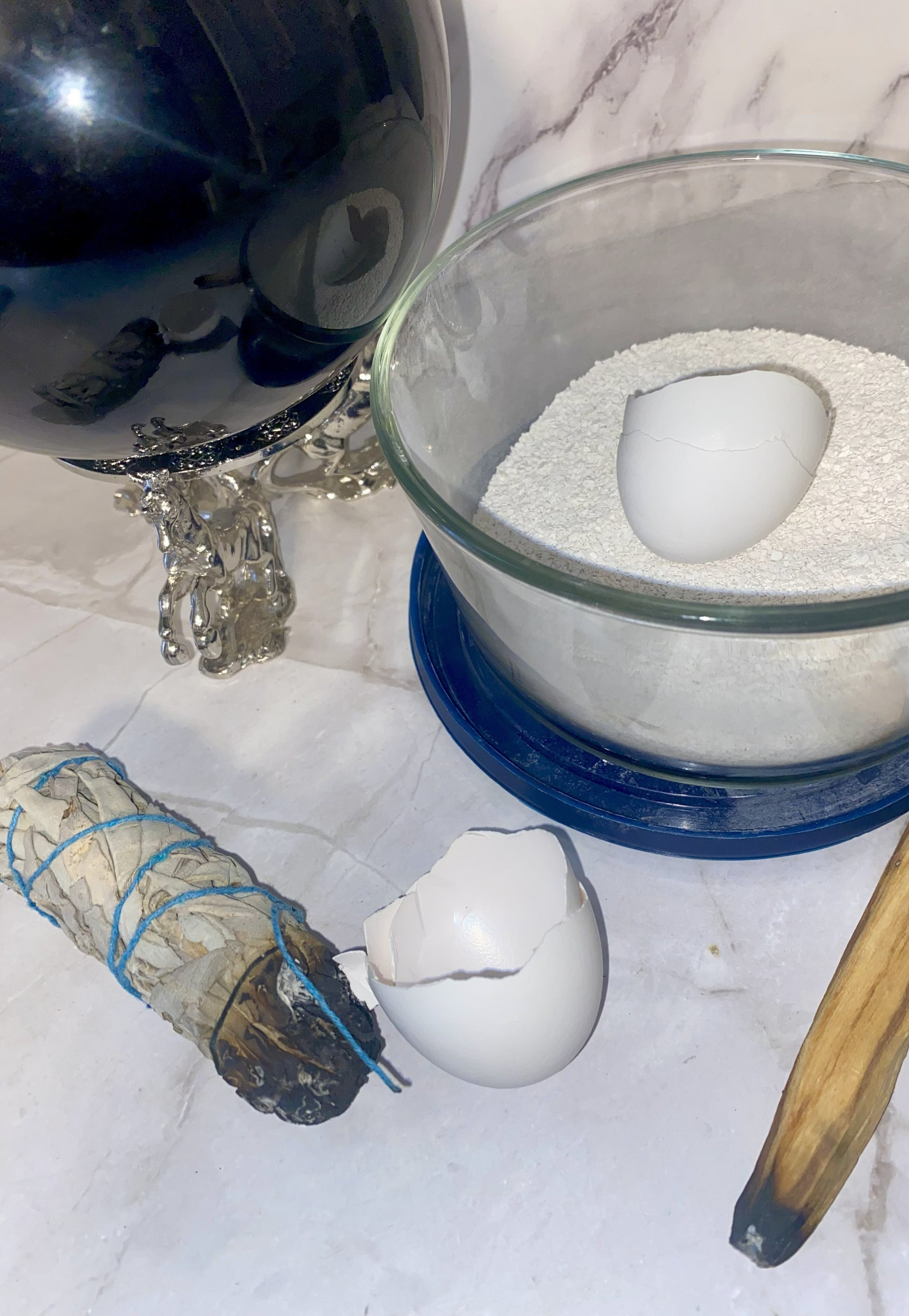 Cascarilla is a handmade powdered base that comes available to you pre-charged w| magickal & spiritual properties as a protection agent, purifier + cleanser for items, objects & people as well as repelling negative innerg. This powder is an excellent source of calcium + is also seen as a major botanical nutrient. It is used in chalk form to make sigils & write out incantations + is great in loose powder form when it comes to protecting your garden's soil.