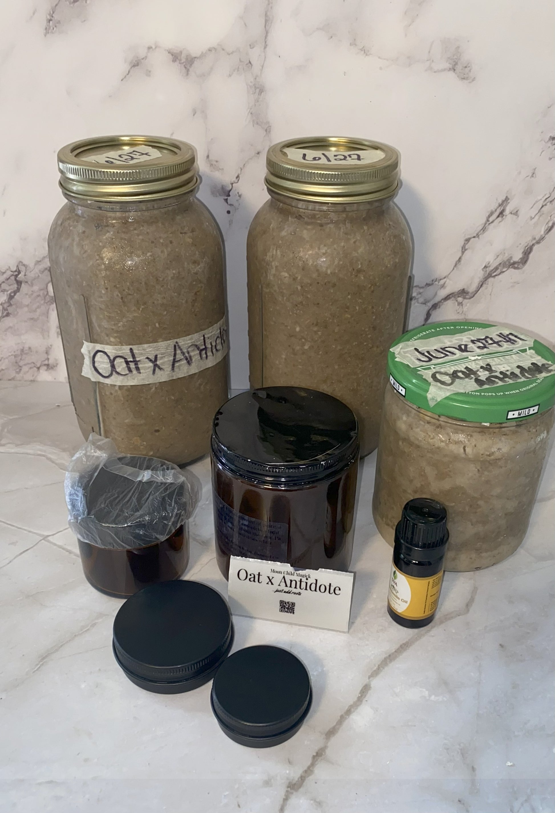 Right after application, Oat x Antidote immediately searches, finds & combats the problem. The anti-bacterial, anti-inflammatory, antioxidants + antiseptic properties within allows the skin to prosper by reducing irritation + redness, improving the skin w| just a light exfoliation rub, leaving it soft, smooth + tight. The scents + natural ingredients add a soothing feel allowing skin rehabilitation to begin. No more worries of harsh and/or unhealed skin!