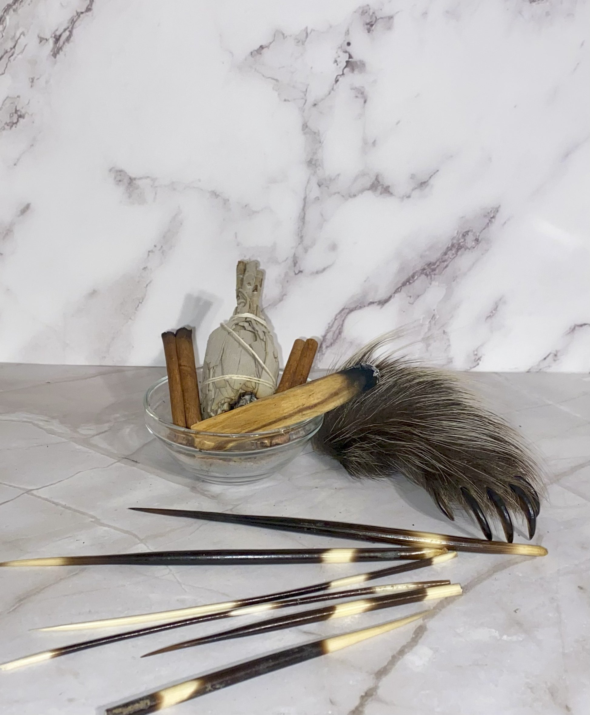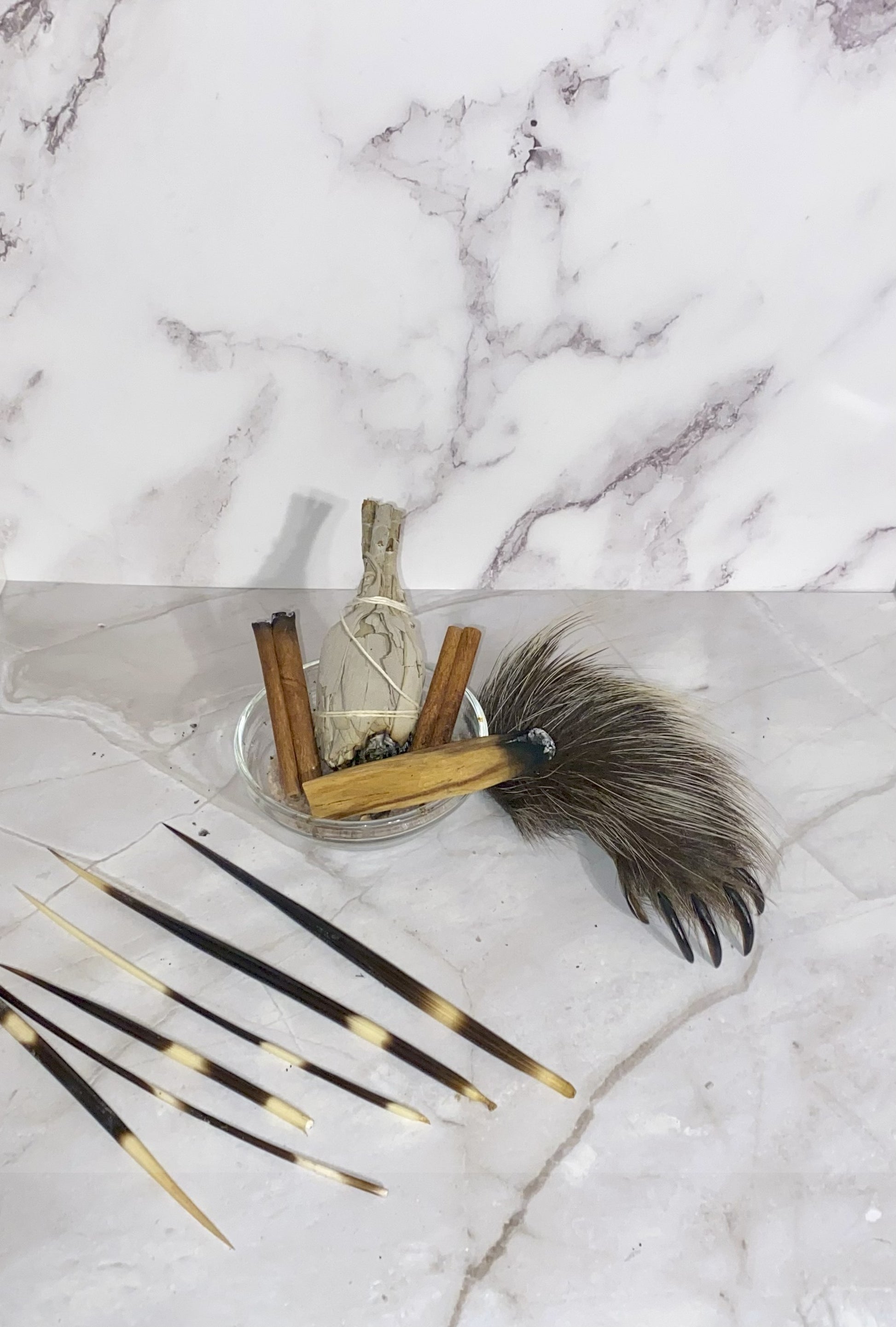 Porcupines are symbolically known for aiding in protection. However, the foot/paw of this Genuine Mummified Porcupine Hind Foot, as well as other hind feet of Porcupines, also aid in guidance, spiritual alignment, keeping you in the know, staying a step ahead as well as having the ability to possess protective innerg. The hind foot of a Porcupine has what the front paws doesn't - a fifth digit, referred to has a hallux. The hallux is their guide in navigating effectively in their natural habitat.